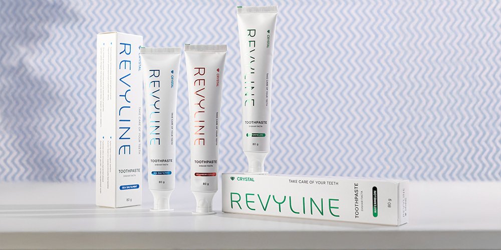 Вместе со щеткой и ирригатором Revyline выпустил новую линейку зубных паст Crystal. Паста не содержит фтор и обладает низким индексом абразивности RDA 70, благодаря чему подходит для большинства людей.